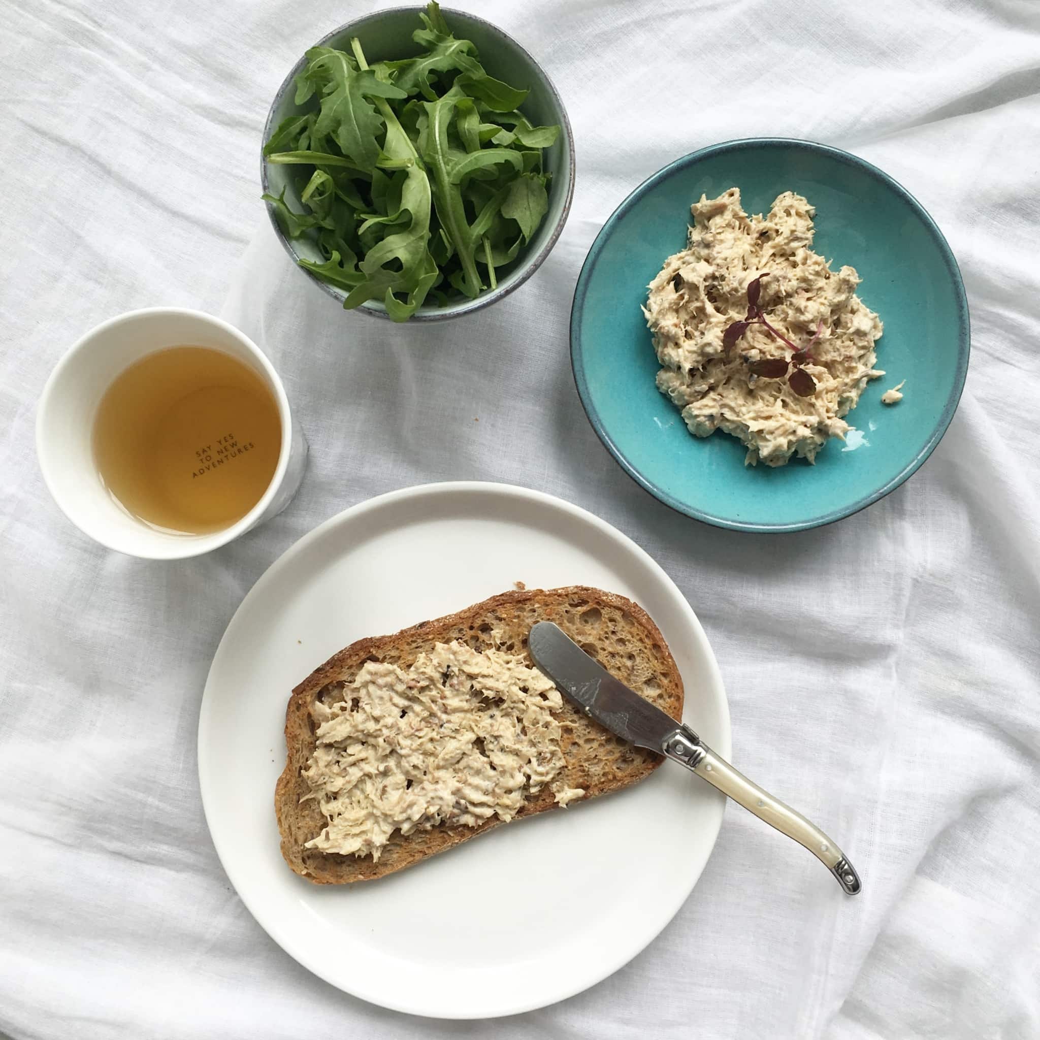 Toen ik deze blikjes makreel kreeg, moest ik gelijk denken aan een van mijn favo’s die ik bestel als we naar het Vlaamsch Broodhuys gaan om te lunchen. Eigenlijk ben ik wat dat betreft best een beetje saai en houd ik het altijd bij mijn mandje met brood, rilette van makreel en een heerlijke zuurzak sap. YUMMie.