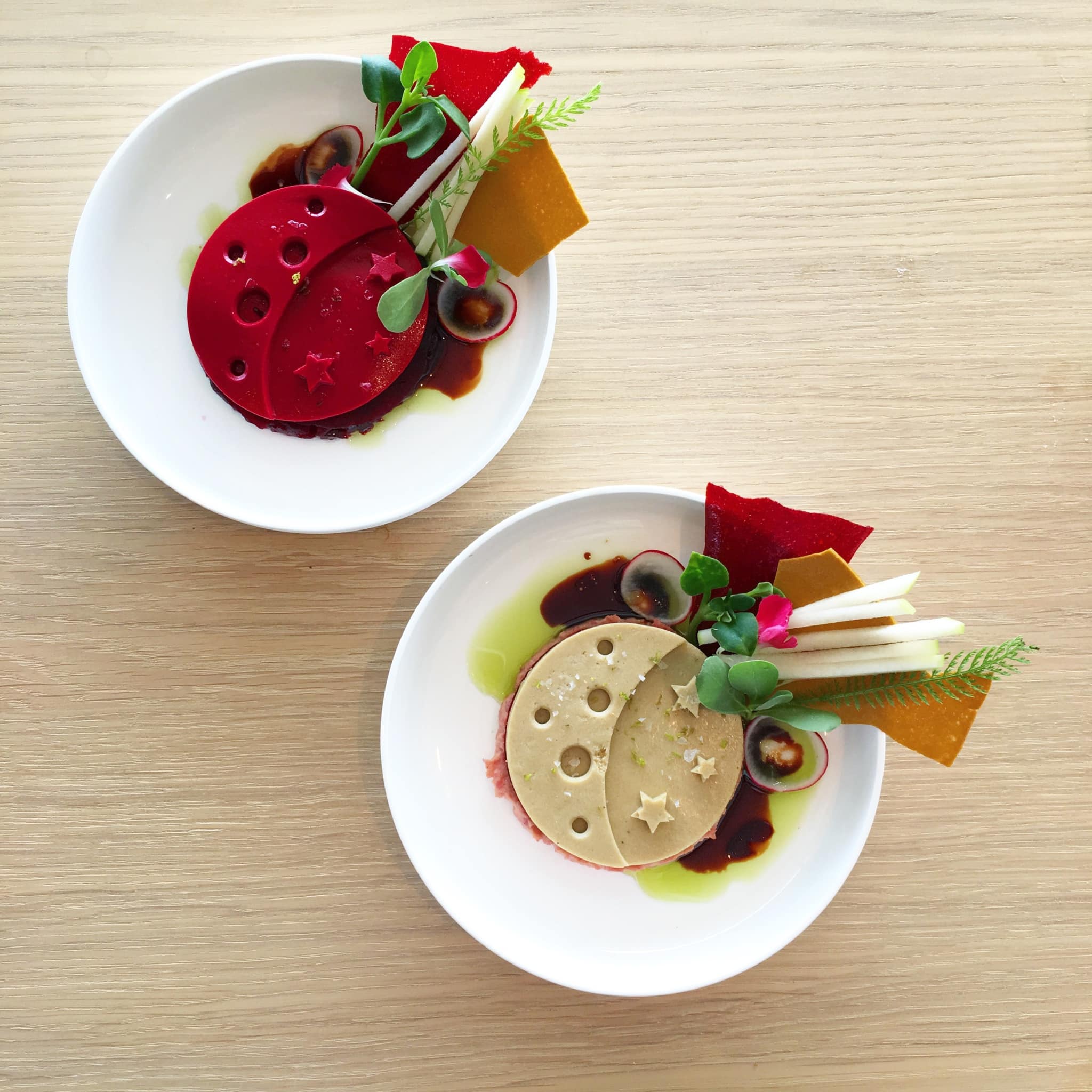 Zoals ik hierboven al schreef kon ik heel duidelijk de stijl van Jaimie herkennen. Mooie gerechtjes, die qua portionering niet te groot zijn. Het doel van de menukaart is lekker, uitgebreid, maar niet extreem lang lunchen of dineren. Je kan daarom ook kiezen tussen 3 (360 lunch a 40 euro), 5 (menu Eclipse a 60 euro) of 7 gangen (menu Moon a 80 euro). En dat tegen vrij schappelijke prijzen. Losse gerechtjes kosten 15 euro.